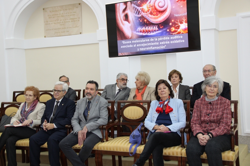 La Dra. Isabel Varela Nieto, profesora de investigación del CSIC en el Instituto de Investigaciones Biomédicas Sols-Morreale (CSIC-UAM), impartió la conferencia titulada “Bases moleculares de la pérdida auditiva asociada al envejecimiento: estrés oxidativo y neuroinflamación”.