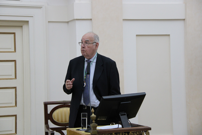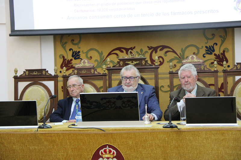 El Dr. Domínguez-Gil Hurlé, se ocupó de ‘El uso corrector de medicamentos en Geriatría; cómo evitar los riesgos y conseguir los mayores beneficios’. Comenzó su participación delimitando el concepto de anciano y sus distintas subcategorías en razón de la edad, para entender este colectivo poblacional como no homogéneo; subrayó la ausencia de ensayos clínicos específicos sobre la población anciana y la consideración de ‘población especial’ que les otorga, desde 2010, el International Council for Harmonisation of Technical Requirements for Pharmaceuticals for Human Use [ICH], en relación con la terapéutica farmacológica. Señaló el singular valor que la seguridad del paciente debe tener dentro de cualquier estrategia sanitaria y presentó algunas de las contribuciones más señeras realizadas al respecto por el Instituto para el Uso Seguro de los Medicamentos, delegación española de del Institute for Safe Medication Practices [ISMP], con sede en Salamanca; en particular en lo que se refiere a los incidentes causados por medicamentos. Abordó la relación de los medicamentos inapropiados para el anciano y las consecuencias en la respuesta al tratamiento farmacológico, en particular los problemas de adherencia y persistencia en el tratamiento, analizando, a modo de ejemplo, los casos de control de la coagulación en ancianos o los progresos tecnológicos en Geriatría oncológica.