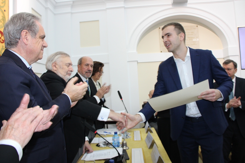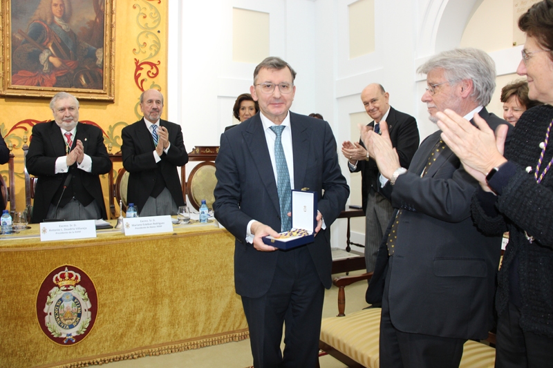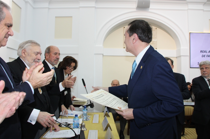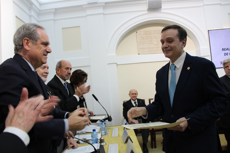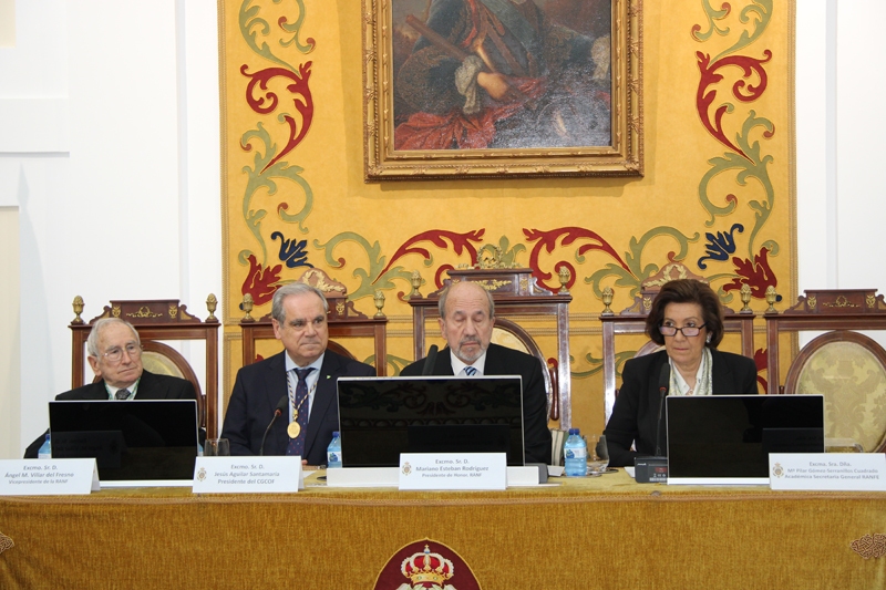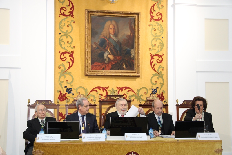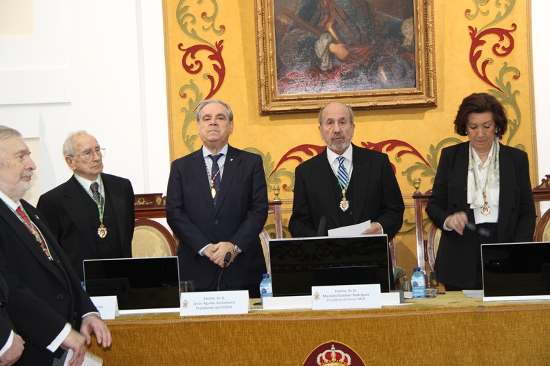 Posteriormente, a las 19:00 horas, tuvo lugar la apertura oficial del acto académico, presidida por el Excmo. Sr. D. Mariano Esteban Rodríguez, Presidente de Honor de la RANF. En el marco del protocolo académico se llevó a cabo la toma de posesión del nuevo Presidente, el Excmo. Sr. D. Antonio L. Doadrio Villarejo, así como del Bibliotecario electo, el Excmo. Sr. D. Antonio I. González Bueno.