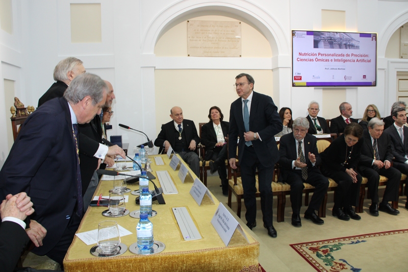El Discurso Reglamentario de Apertura corrió a cargo del Excmo. Sr. D. José Alfredo Martínez Hernández, Académico de Número, bajo el título “Nutrición Personalizada de Precisión: Ciencias Ómicas e Inteligencia Artificial”. Su intervención puso de relieve la convergencia entre la biología molecular, la tecnología de datos y la farmacología de precisión como pilares para el futuro de la salud personalizada.