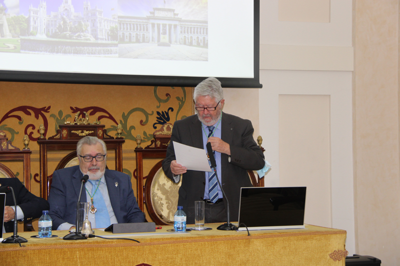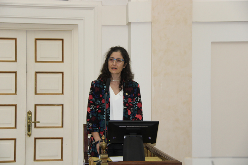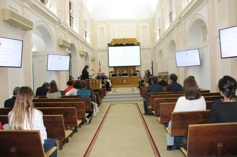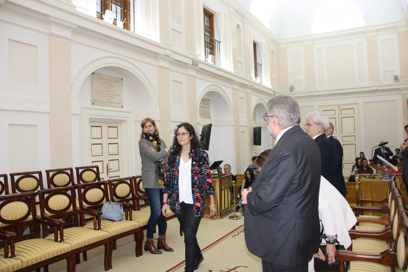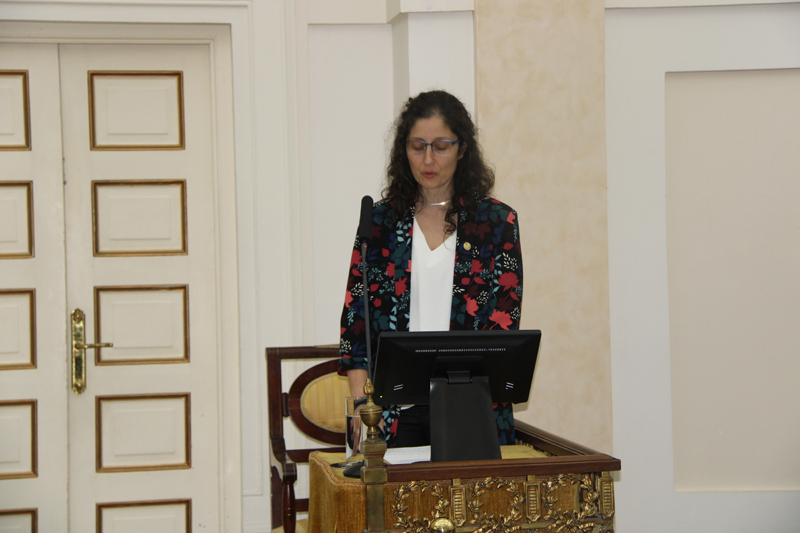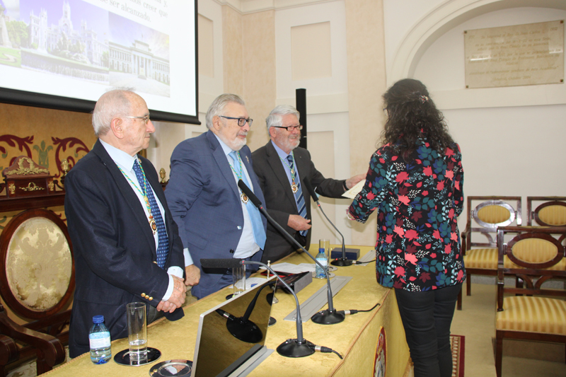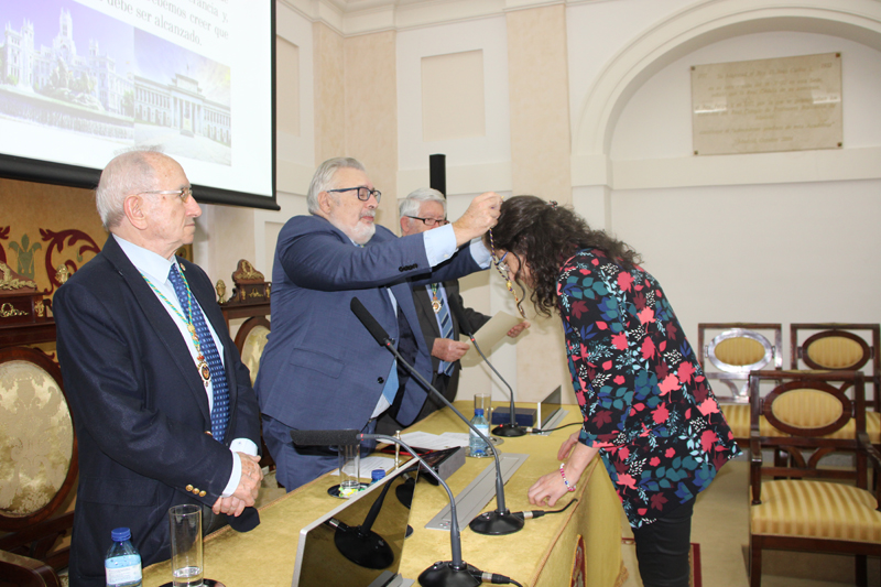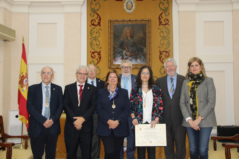 En su discurso, la Dra. Colilla expuso la problemática actual de las infecciones y el trabajo de investigación realizado para proponer soluciones a este problema de gran impacto socio-económico. Comenzó abordando la relación histórica de la Humanidad con las infecciones hasta el desarrollo de vacunas y antibióticos para abordar, a continuación, la resistencia a los fármacos antimcrobianos como una amenaza seria frente a los avances conseguidos en salud global, un problema que consideró complejo y mutifuncional, por lo que pasó a analizar los mecanismos de resistencia bacteriana, en particular las ‘super bacterias’ y la formación de biofilms bacterianos. El grueso de su intervención estuvo dedicado a las nanoformulaciones antibacterianas y a las ventajas que estas suponen para el transporte selectivo de antibacterianos a la diana terapéutica, la liberación controlada de fármacos, la posibilidad de incorporación conjunta de varios agentes microbianos, la mejora de la eficacia terapéutica, la reducción de dosis efectiva, la disminución significativa de efectos secundarios y, en definitiva, el aumento de la seguridad y de la biocompatibilidad. De entre los nanotransportadores disponibles, se ocupó de la utilidad de las nanopartículas mesoporosas de sílice, cuya utilidad señaló, a la par que dio noticia de su experiencia de empleo en cuatro frentes: sistemas liberalizadores de antibióticos (rifampicina, levofloxacino, gentamicina), incorporación de sistemas estímulo/repuesta que permiten una liberación inteligente de fármacos, incorporación de ligandos de vectorialziación para desarrollar nanosistemas con capacidad para dirigirse a la bacteria y/o al biofilm y el desarrollo de sistemas multiterapia mediante la combinación de diferentes agentes antimicrobianos como antibióticos y cationes terapéuticos (Ag+, Zn2+, Cu2+).