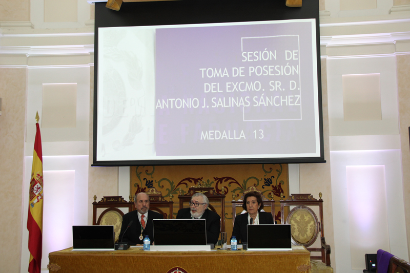 El jueves, 7 de marzo de 2024 a las 19 horas, la Real Academia Nacional de Farmacia tuvo el honor de celebrar la Sesión Solemne para la toma de posesión como Académico de Número, en la Medalla 13, del Excmo. Sr. D. Antonio Jesús Salinas Sánchez, quien leyó su discurso titulado: “Proyección de los nanomateriales en la medicina del futuro”. Le contestó en nombre de la Corporación, la Excma. Sra. Dña. María Vallet Regí, Académica de Número.