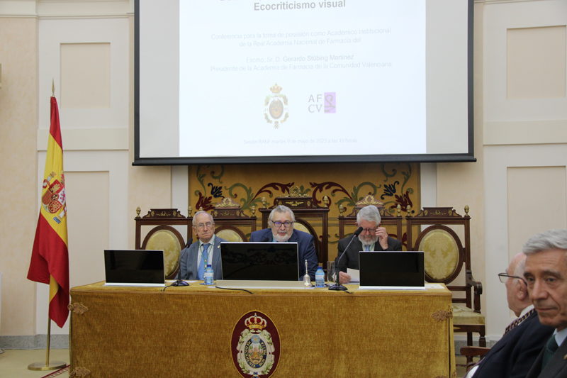 El martes 9 de mayo de 2023 a las 19 horas, la Real Academia Nacional de Farmacia tuvo el honor de celebrar la Sesión Pública, para la toma de posesión como Académico Institucional del Excmo. Sr. D. Gerardo Stübing Martínez. Presidente de la Academia de Farmacia de la Comunidad Valenciana, quien pronunció su conferencia de ingreso titulada: “Hágase según arte: botánica, fotografía experimental y ecocriticismo visual”. Fue presentado por el Académico de Número de la RANF, el Excmo. Sr. D. Santiago Mas Coma.